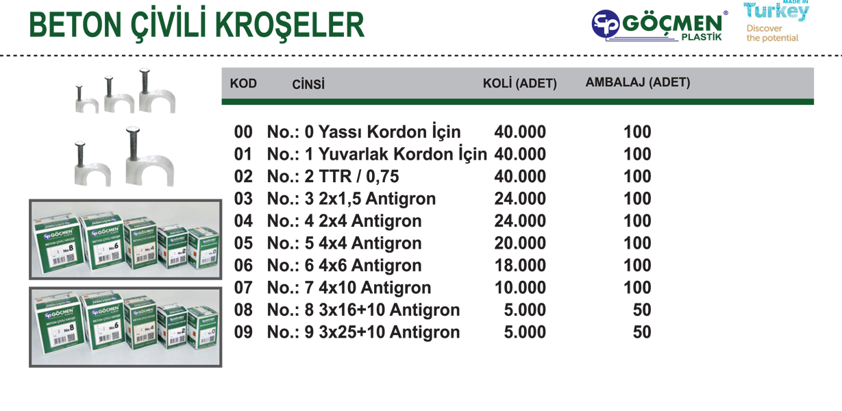 GÖÇMEN PLASTİK kroşe , beton çivili kroşe ,